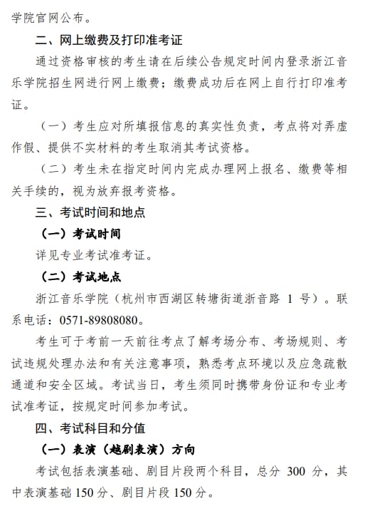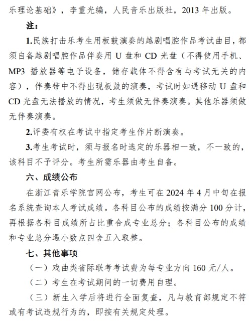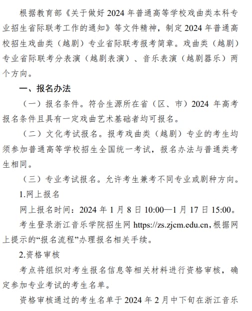 浙江音乐学院024年普通高校招生戏曲类(越剧)专业省际联考报考简章